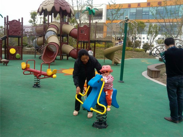 此次投入使用有健身單車、壓腿器、漫步機(jī)等健身器材,以及蹺蹺板、搖搖樂等兒童娛樂實(shí)施。其中,最引人注目的是一套大型兒童玩具,這在宿遷的社區(qū)健身器材建設(shè)中尚屬首例。整個健身休閑區(qū)域布局錯落有致,色彩清新活潑,并鋪設(shè)塑膠地面,與周圍環(huán)境相得益彰。自投入使用以來,每天都吸引大批周邊居民來此鍛煉玩耍。