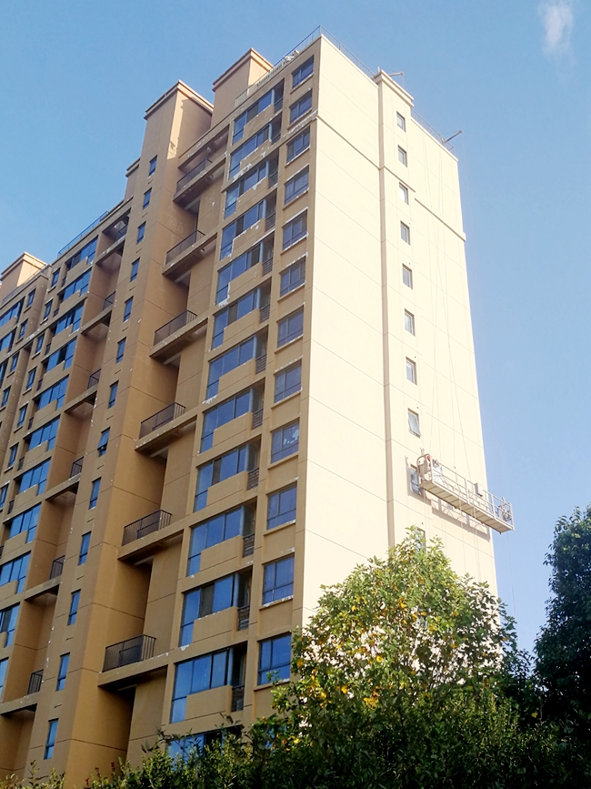 本次出新面積約1.7萬平方米,包含外立面破損修補、外墻鏟除粉刷出新、更換樓宇標識等。目前,白領公寓、西楚金地分別完成合同工程量約50%、30%,原本斑駁的外立面一下子變得 “年輕”“靚麗”起來。
