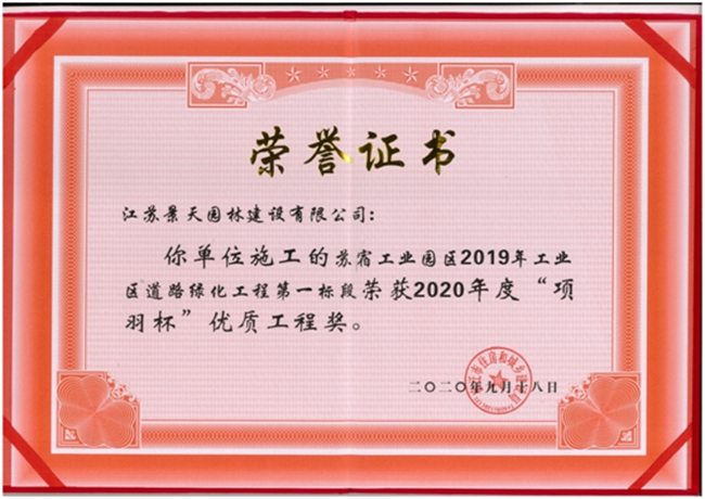 近日,由江蘇省蘇州宿遷工業(yè)園區(qū)開發(fā)有限公司建設(shè)管理的蘇宿工業(yè)園區(qū)2019年工業(yè)區(qū)道路綠化工程第一標段榮獲2020年度“項羽杯”優(yōu)質(zhì)工程獎。