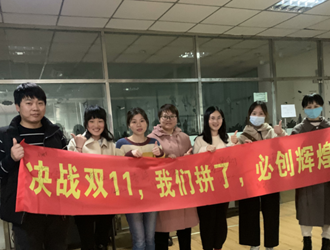 11月5日下午,我們來到騰輝家具的辦公室,首先映入眼簾的是一條亮麗的條幅:“決戰(zhàn)雙11,我們拼了,必創(chuàng)輝煌!”據(jù)了解,騰輝家具從十月份就開始備戰(zhàn)“雙十一”了,從運營的活動報名,到工廠的積極備貨,再到客服的服務態(tài)度。除了騰輝家具,園區(qū)電商企業(yè)四通科技、左氏木業(yè)等電商企業(yè)也都紛紛進行了動員。