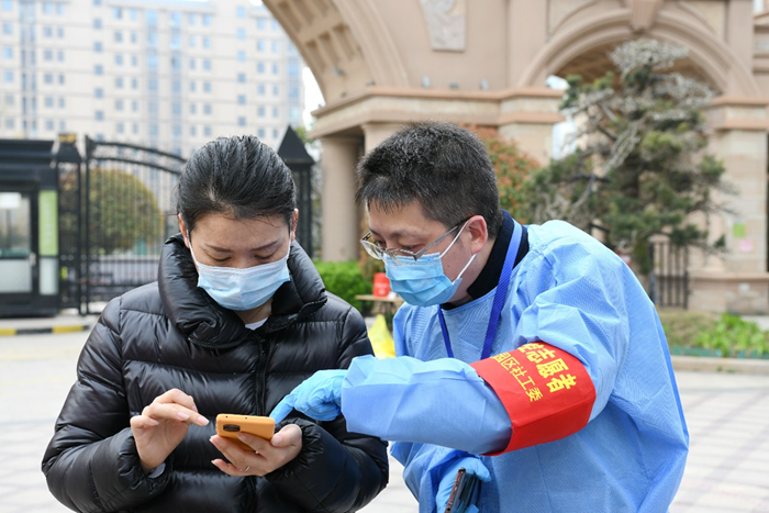 一群黨員“點位長”,扛起疫情防控沉甸甸的責(zé)任 “請打開 ‘宿康寶’核酸檢測預(yù)約記錄,主動出示給工作人員。”“請戴好口罩,保持一米線。”兩日來,在園區(qū)翡翠藍(lán)灣小區(qū)核酸檢測點,排隊等候的小區(qū)居民總能看到臂戴黨員志愿者袖標(biāo)的城發(fā)公司行政人事部兼合約造價部總經(jīng)理李桂志在人群中忙碌的身影。每次核酸檢測前,他統(tǒng)籌安排,早早做好現(xiàn)場布置;檢測過程中,他不停進(jìn)行安全提醒,及時指導(dǎo)待檢人員提前做好微信小程序“宿康寶”的注冊和預(yù)約登記,幫助現(xiàn)場群眾快速便捷完成核酸檢測。