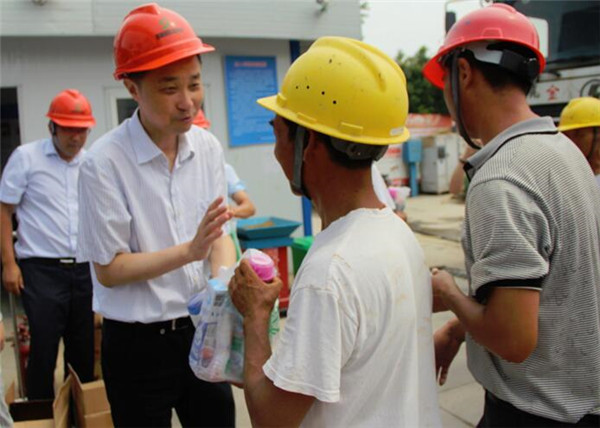 許紹杰仔細(xì)詢問了一線工人工作、生活情況,給他們送上毛巾、礦泉水、沐浴露等防暑降溫用品,并要求施工單位根據(jù)夏季高溫氣候特點(diǎn)及時(shí)調(diào)整作息時(shí)間,認(rèn)真落實(shí)防暑降溫措施,充分保證工人的休息,防止中暑,確保施工安全。